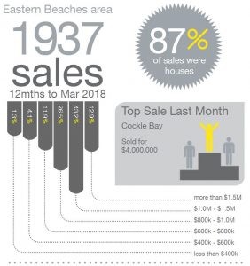 The figures below include all sales by all agencies for the suburbs of Bucklands Beach, Eastern Beach, Half Moon Bay, Howick, Cockle Bay, Shelly Park, Highland Park, Farm Cove, Sunnyhills, Pakuranga, Edgewater, Botany Downs, Northpark, Dannemora, East Tamaki, Flat Bush, Whitford, Beachlands and Maraetai.