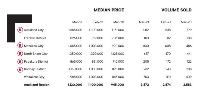 Auckland’s median house price increased by 18.5% from $945,000 in March 2020 to $1,120,000 in March 2021 – a new record for Auckland. Additionally, Auckland City, Manukau City, North Shore City, Papakura District and Rodney District all reached new record median highs. Wendy Alexander, Acting Chief Executive at REINZ says: “March was another incredibly strong month from a price perspective with 12 regions and 32 districts across the country seeing record median prices. The national median also reached a new record, increasing by $46,300 since last month, showing just how much pressure has been placed on house prices and how we desperately need more supply to come to the market.