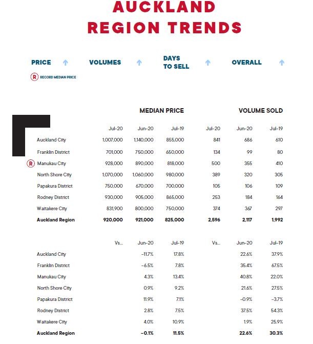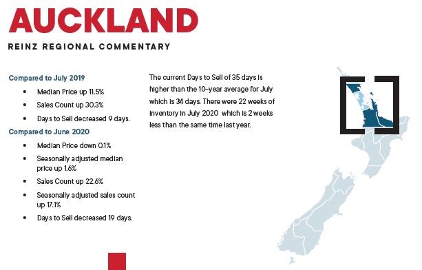 Bindi Norwell, Chief Executive at REINZ says: “New Zealand’s property market continued to defy expectations in July with sales volumes increasing by 24.6% when compared to the same time last year.  “This was the largest annual percentage increase in sales volumes we’ve seen for the country since September 2015, highlighting just how confident the market was during July.
